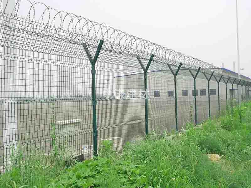 機(jī)場(chǎng)護(hù)欄網(wǎng)又稱機(jī)場(chǎng)圍欄網(wǎng)、機(jī)場(chǎng)隔離網(wǎng)、Y型安全防御護(hù)網(wǎng),由Y型支架立拄,加強(qiáng)型焊接片網(wǎng),網(wǎng)片中帶有Y型加強(qiáng)筋可增強(qiáng)護(hù)欄網(wǎng)的抗沖擊力。安全防盜連接件和熱鍍鋅刀片或者刺繩網(wǎng)組成,是強(qiáng)度和安全防御性級(jí)別很高的圍界護(hù)欄網(wǎng)產(chǎn)品之一。